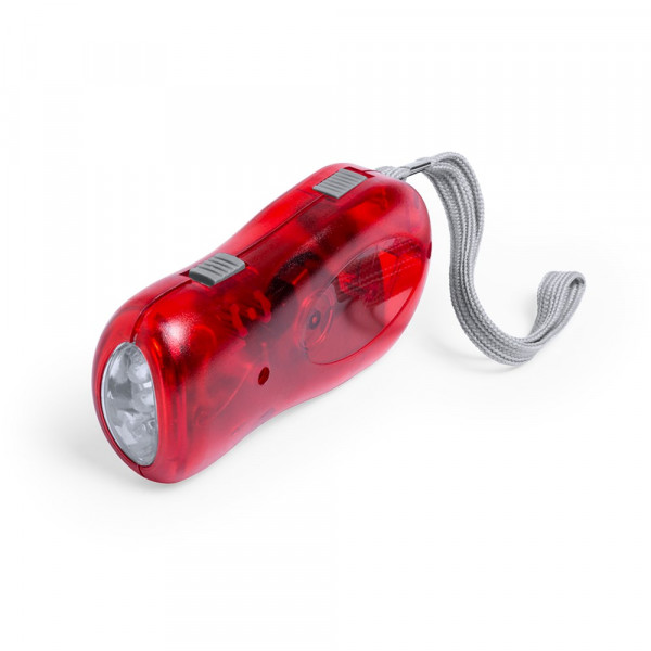 Taschenlampe mit 3 LEDs und Gehäuse in halbtransparenter Ausführung in verschiedenen Farben. Mit manueller Aufladung und Trageschlaufe. Präsentiert in einer individuellen Box.