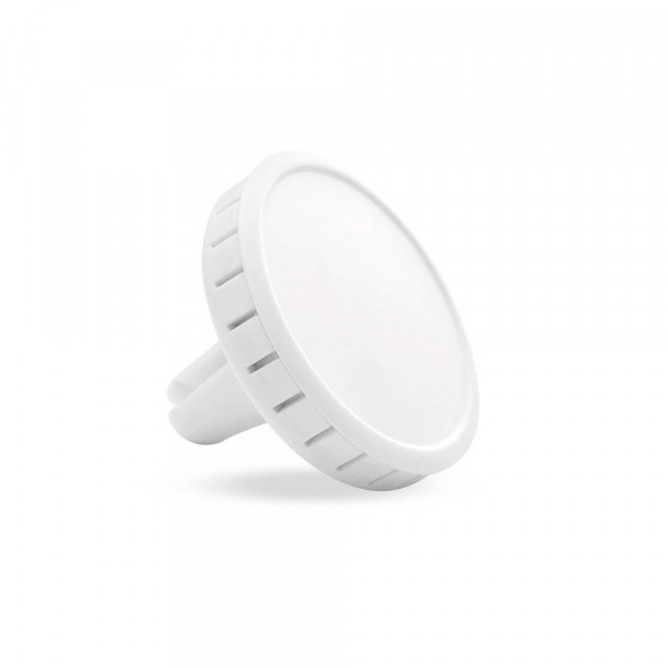 Lufterfrischer mit Zitronenaroma für die Befestigung an der Auto-Lüftung. Mit Gehäuse in fröhlichen Farben und spezieller Stanzung für die Personalisierung mittels Doming / 3D Gel-Aufklebern.