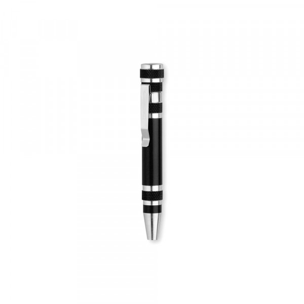 Multi-Tool aus Aluminium mit 6 Funktionen in einer Vielzahl von kräftigen Metallic-Farben. Mit rutschfestem Gehäuse mit Metallclip. Enthält 6 verschiedene Flach- und Kreuzschlitzschraubendreher.