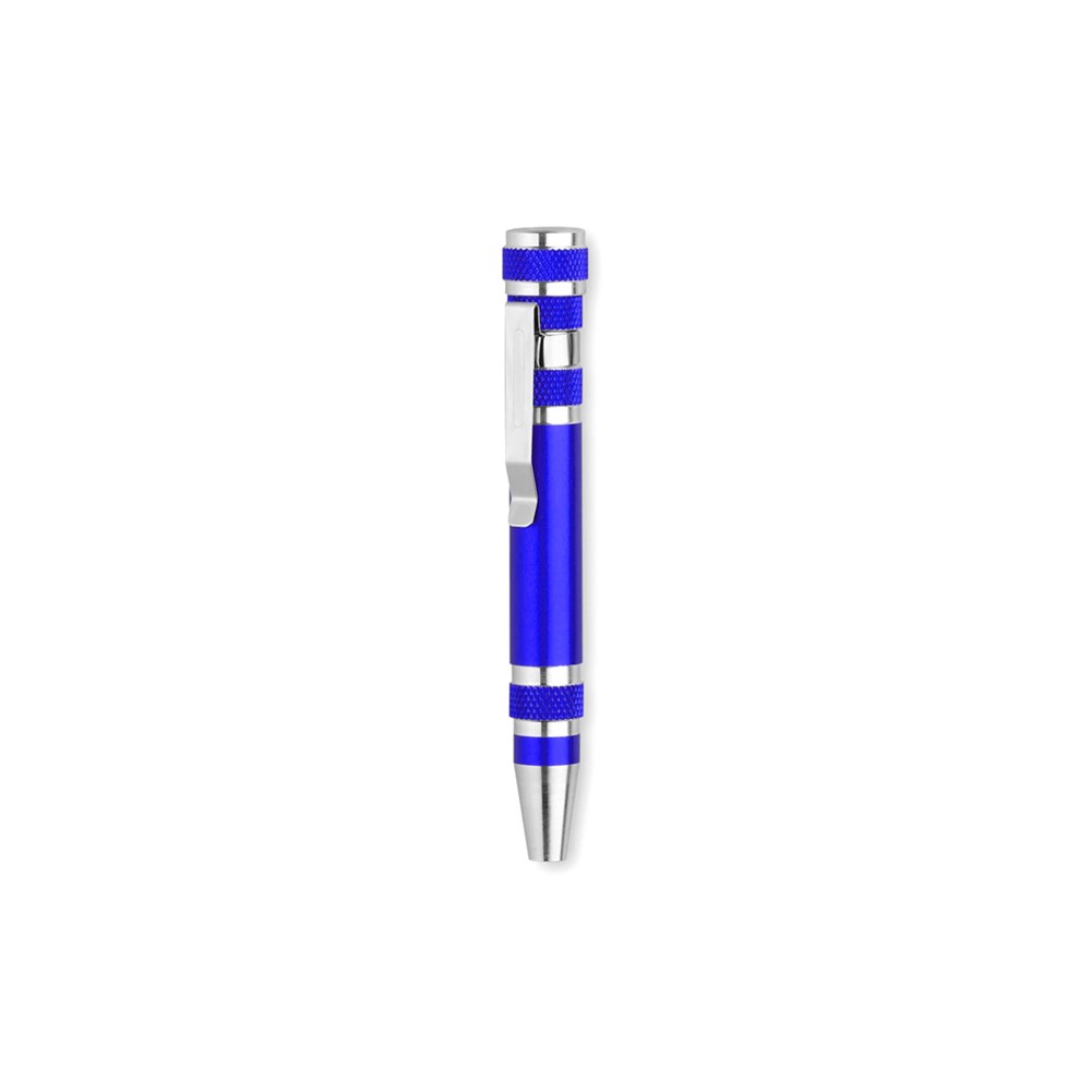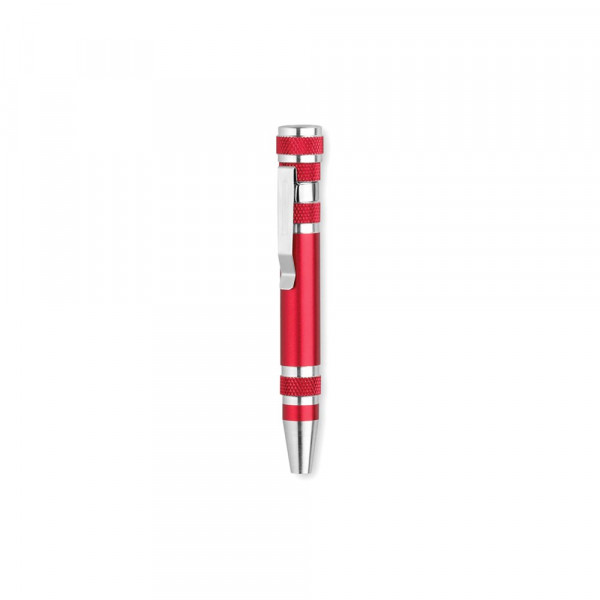 Multi-Tool aus Aluminium mit 6 Funktionen in einer Vielzahl von kräftigen Metallic-Farben. Mit rutschfestem Gehäuse mit Metallclip. Enthält 6 verschiedene Flach- und Kreuzschlitzschraubendreher.