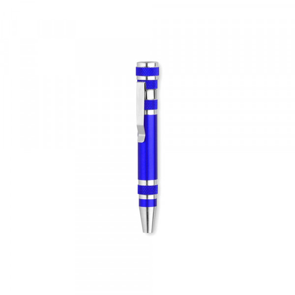 Multi-Tool aus Aluminium mit 6 Funktionen in einer Vielzahl von kräftigen Metallic-Farben. Mit rutschfestem Gehäuse mit Metallclip. Enthält 6 verschiedene Flach- und Kreuzschlitzschraubendreher.