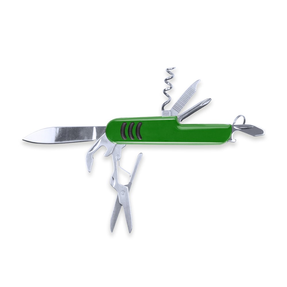 Multifunktions-Taschenmesser in kräftigen Farben mit Edelstahl-Details sowie Griff mit rutschfester Riffelung. Mit 9 Funktionen. Präsentiert in einer individuellen Box.