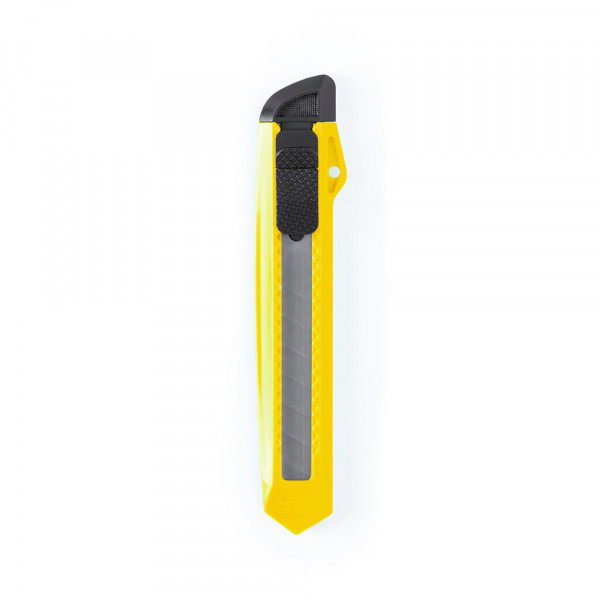 Teppichmesser mit breiter Klinge und ergonomischem Griff mit Stanzung. Mit abnehmbarem Deckel für die Einstellung der Klinge.
