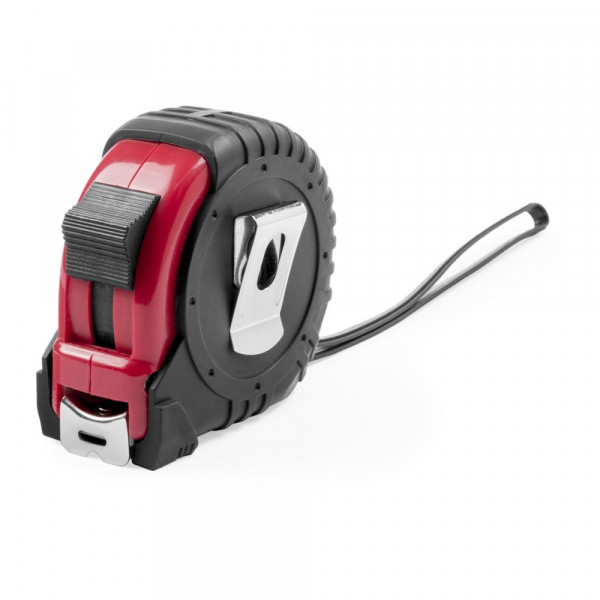 7,5-Meter-Flexometer mit Metallklinge und Verriegelungsmechanismus. Mit weichem Körper in verschiedenen Farben, beschichtet mit einer Schutzhülle aus widerstandsfähigem Gummi, Metallclip für Gürtel und Tragegurt. Präsentiertn in einer individuellen Schachtel.