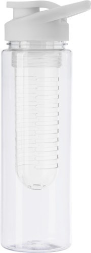 Trinkflasche aus Tritan mit einem Fassungsvermögen von ca. 700 ml und einem Einsatz für Früchte. Der Deckel ist mit einem praktischen Schraubverschluss sowie einem Henkel versehen.