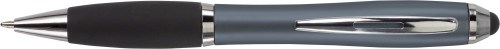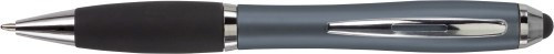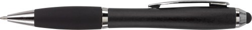 Kugelschreiber aus Kunststoff, mit Drehfunktion, Metall-Clip, gummierter Griffzone, Touchpen und schwarzer Mine.