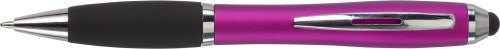 Kugelschreiber aus Kunststoff, mit Drehfunktion, Metall-Clip, gummierter Griffzone, Touchpen und schwarzer Mine.