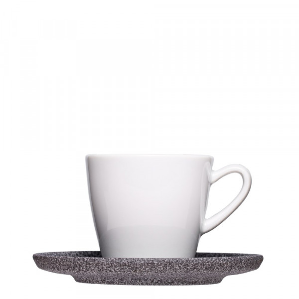 Kaffeetasse mit einer Untertasse aus Granitporzellan. Interessanter Materialmix aus glatt und... mehr