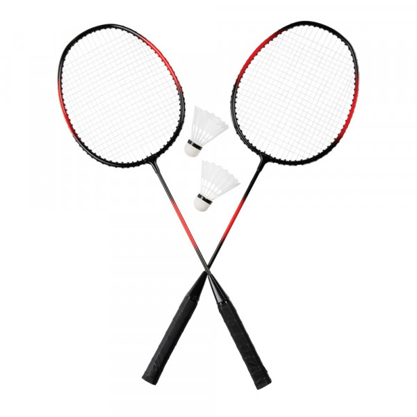 Set mit 2 Badmintonschlägern und 2 Federbällen, verpackt in einem PVC-freien Non-Woven Etui, um das Set zu einem Tagesausflug oder in Ihren Urlaub mitzunehmen.