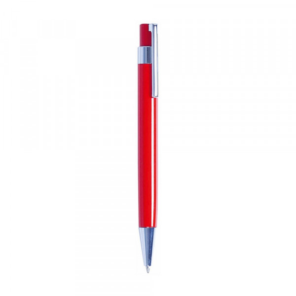 Druck-Kugelschreiber mit originellem, zweifarbigem Design und weichem Metallkörper in fröhlichen Farben. Spitze und Clip in Silber. Präsentiert in farblich passender Kunstlederhülle. Jumbo-Patrone mit blauer Tinte.
