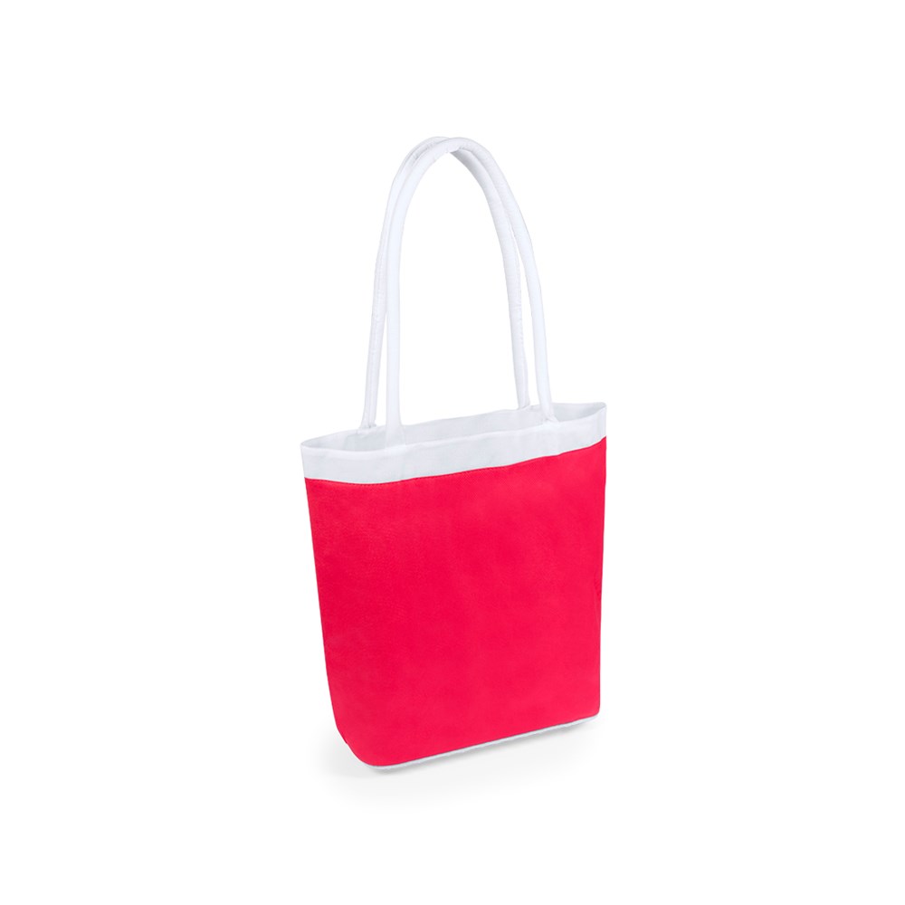 Non-Woven-Tasche aus Faservlies (100 g/m2) mit Körper in einer Vielzahl von lebendigen Farben und Rand und Henkel in Weiß. Mit 66 cm langen, gepolsterten und verstärkten Henkeln sowie Zwickel und Steppnähten. Belastbar mit bis zu 10 kg.
