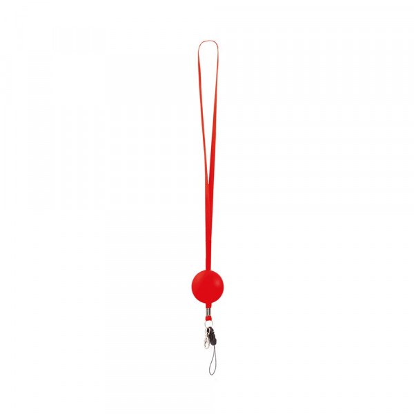 Lanyard aus resistentem, angenehm weichem Polyester in verschiedenen lebendigen Farben. Mit farblich passendem Anti-Stress-Ball, Metallkarabiner und abnehmbarem Band.