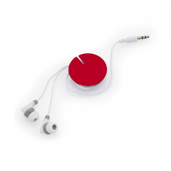 Praktische Kabeltrommel für Kopfhörer in origineller zweifarbiger Ausführung mit breiter Beschriftungsfläche.