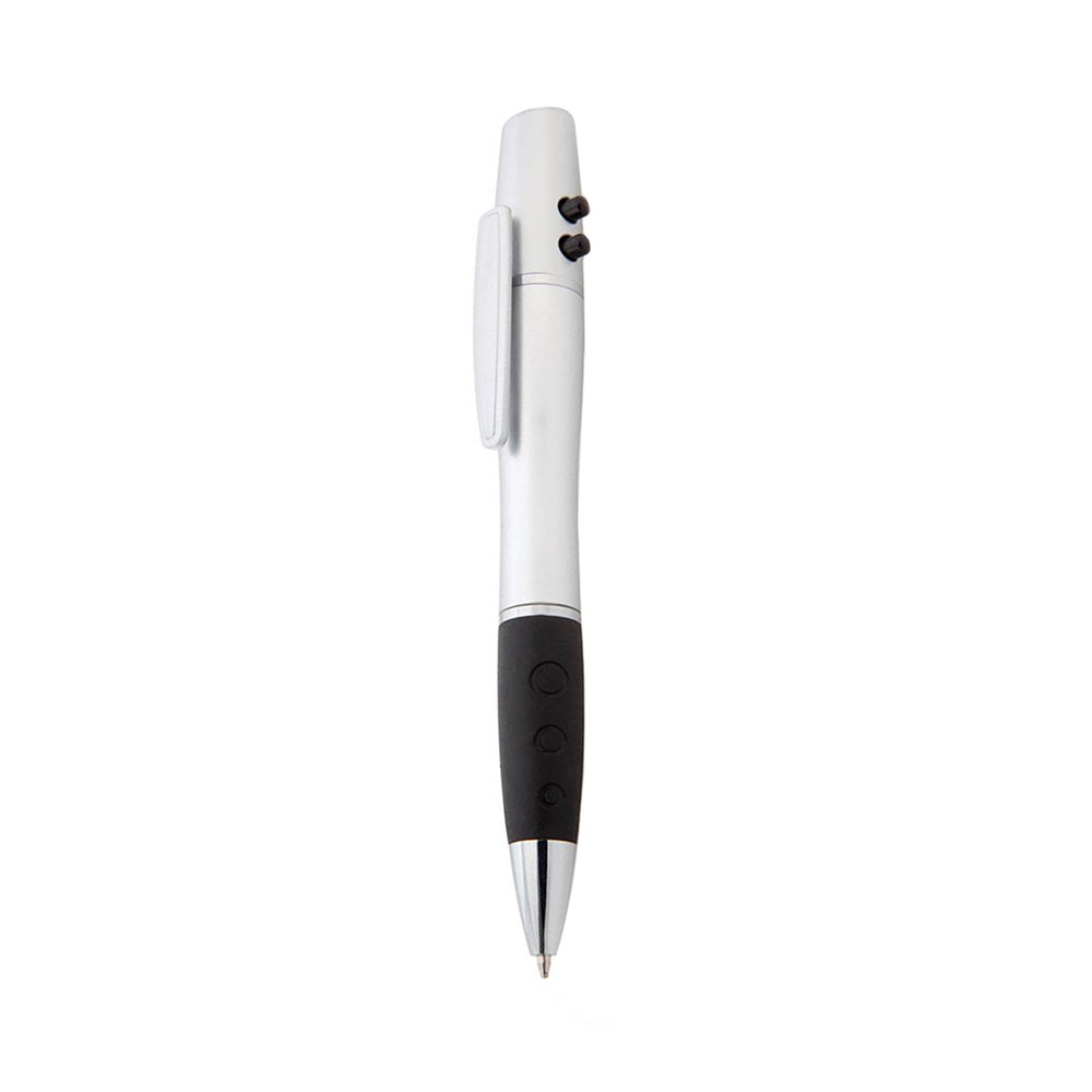 Dreh-Kugelschreiber mit Laserpointer der Klasse 1 mit schlichtem zweifarbigem Design und weichem Griff. Mit seitlichen Knöpfen, praktischem Befestigungsclip und einem geschwungenen Gehäuse, das speziell für den Tampondruck entwickelt wurde. Batteriebetrieben - Knopfzellen inklusive. Präsentiert in einer individuellen Box.