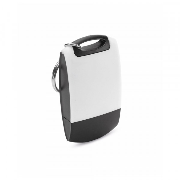 Schlüsselanhänger mit zweifarbigem Design und Fach für Mikrofaser-Reinigungstuch (inklusive).