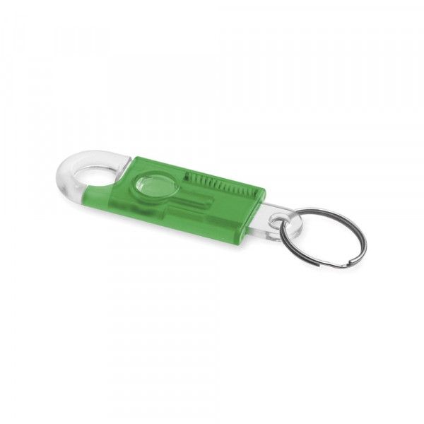 Origineller Schlüsselanhänger mit Gehäuse aus einem transparentem und einem halbtransparentem Teil in kräftigen Farben. Mit integriertem Karabiner.
