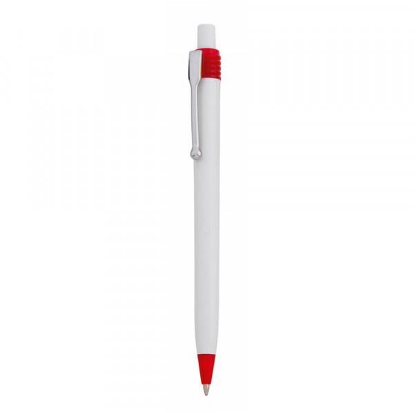 Druck-Kugelschreiber mit auffälligem zweifarbigem Design. Mit weißem geschmeidigem Schaft und Kontrastdetails in kräftigen Farben. Mit Metallclip und Jumbo-Patrone mit blauer Tinte.