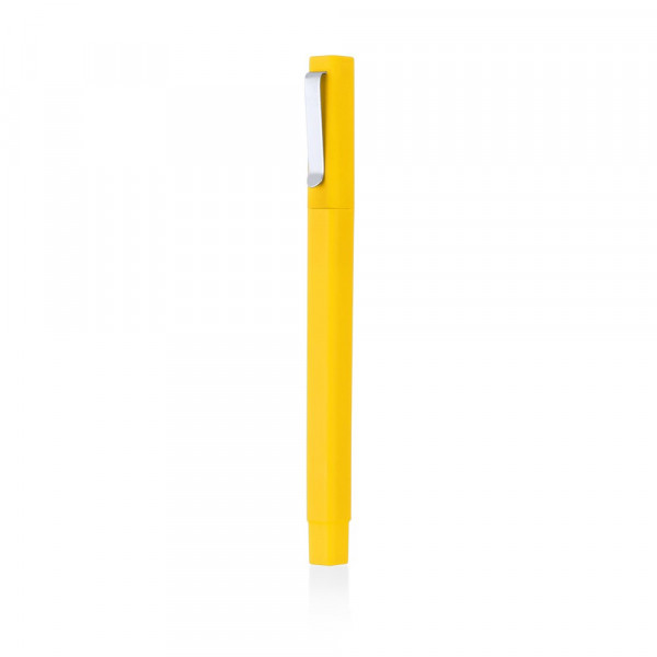 Kugelschreiber mit Kappe und originellem viereckigem Design mit weichem, gummiertem Gehäuse in auffälligen Farben. Mit gebogenem Clip und farblich passender Spitze. Blaue Tinte.