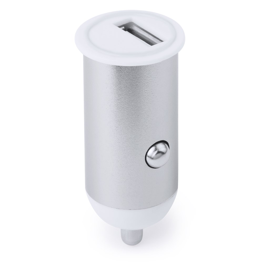 USB-Ladegerät für KFZ-Zigarettenanzünder mit Ladekapazität von 1.000 mAh und eloxiertem Aluminium-Finish. Mit LED-Ladeanzeige. Präsentiert in einer individuellen Box.