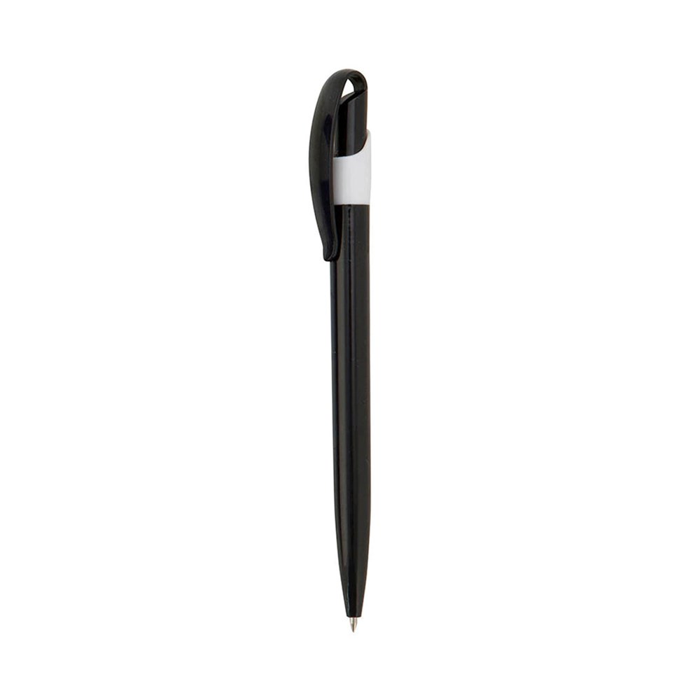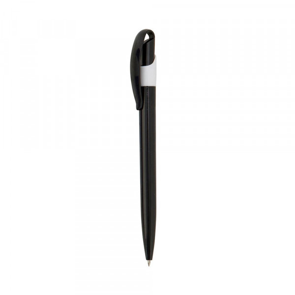 Druck-Kugelschreiber mit auffälligem zweifarbigem Design und glattem Aluminiumgehäuse in lebhaften, soliden Farben. Mit gebogenem Clip in passender Farbe und blauer Tinte.
