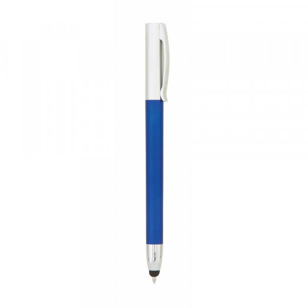Dreh-Kugelschreiber mit Stylus und schlichtem zweifarbigem Design mit Schaft aus weichem Gummi in Schwarz und Kontrastdetails in elegantem Silber. Mit Metall-Clip und blauer Tinte.
