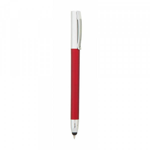 Dreh-Kugelschreiber mit Stylus und schlichtem zweifarbigem Design mit Schaft aus weichem Gummi in Schwarz und Kontrastdetails in elegantem Silber. Mit Metall-Clip und blauer Tinte.