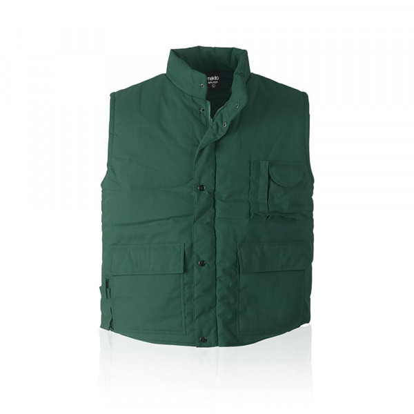 Arbeitsweste aus einer warmen und resistenten Baumwoll/Polyester-Kombination. Mit Polsterung sowie doppeltem Hauptverschluss: Reißverschluss mit Zugband im Zipper sowie Klettverschlussleiste. Geräumige Front- und Seitentaschen sowie Smartphone-Tasche. Erhältlich in den Größen M, L, XL und XXL.