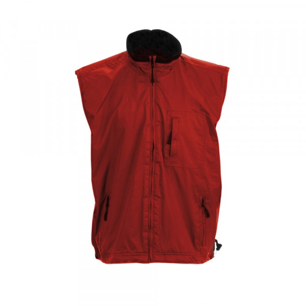 Weste aus robustem Polyester in lebendigen Farben. Mit Innenfutter aus weichem und warmem Polar-Fleece in Schwarz, Reißverschluss mit Zugband, Front- und Seitentaschen mit Reißverschluss mit Zugband sowie elastischem Bund mit Stoppern. Erhältlich in den Größen M, L, XL und XXL.