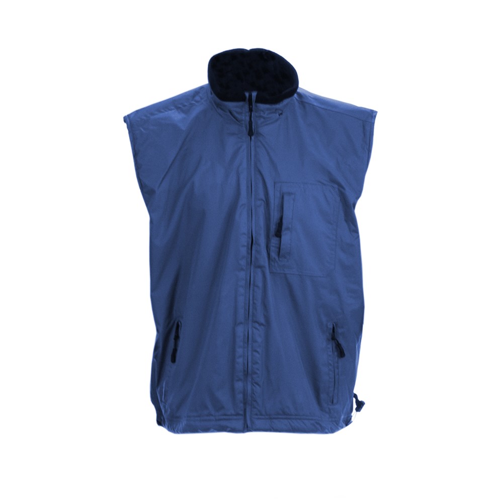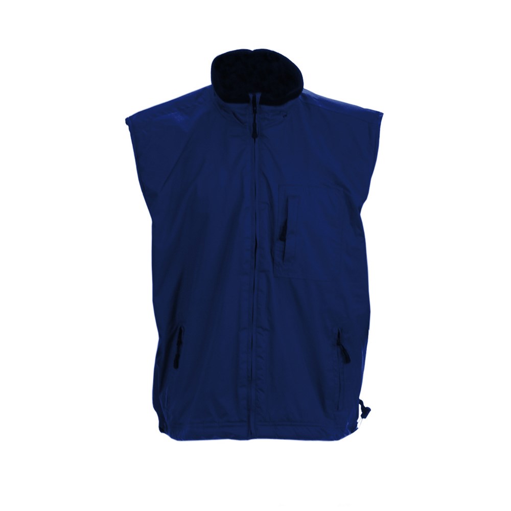 Weste aus robustem Polyester in lebendigen Farben. Mit Innenfutter aus weichem und warmem Polar-Fleece in Schwarz, Reißverschluss mit Zugband, Front- und Seitentaschen mit Reißverschluss mit Zugband sowie elastischem Bund mit Stoppern. Erhältlich in den Größen M, L, XL und XXL.