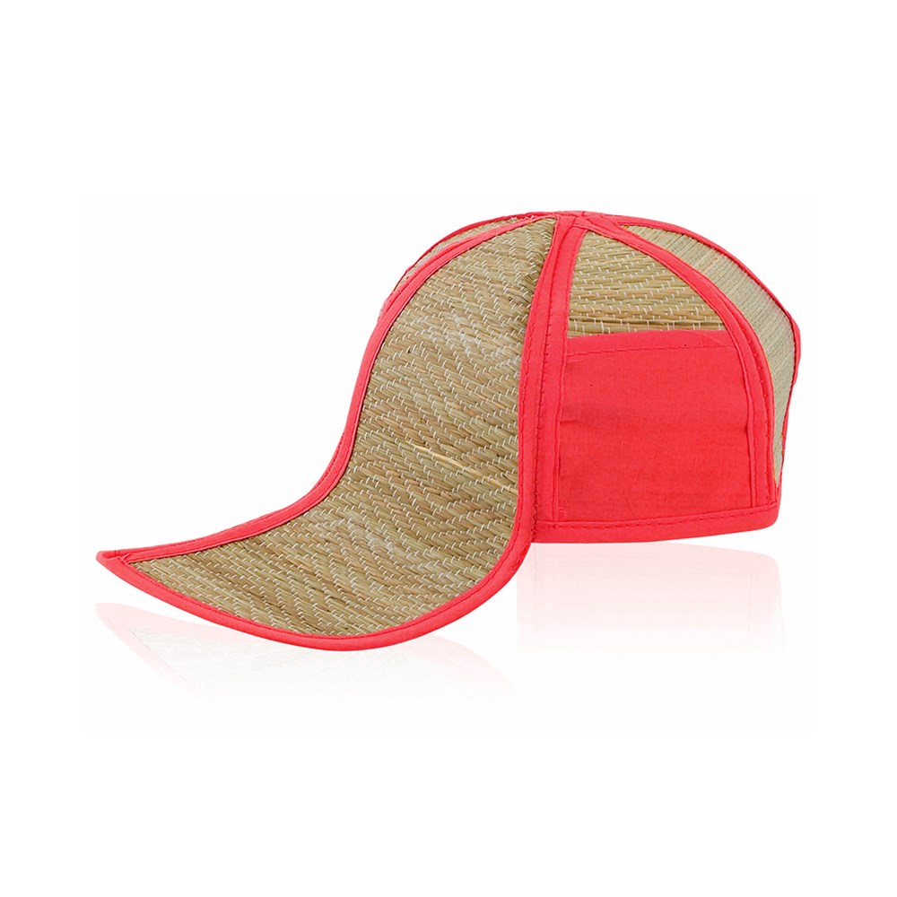 Faltbarer Sonnenhut aus Stroh mit 6 Panelen und Paspel in lebendigen Farben. Mit verstellbaren, elastischen Bändern und Fronttasche für einfaches Bedrucken.