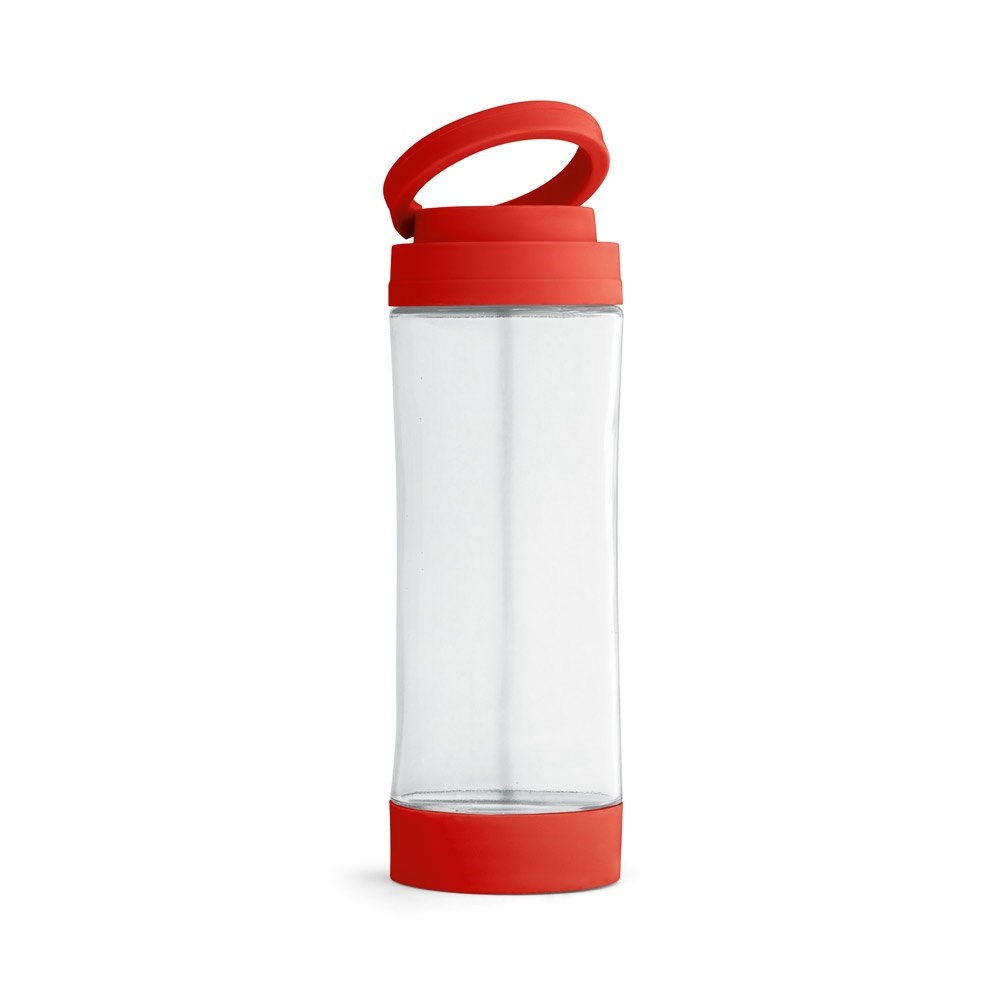 Trinkflasche aus Glas (390 ml) mit Schraubdeckel aus PP und ausziehbarer Smartphone-Halterung. Der Griff am Deckel ermöglicht den bequemen und praktischen Transport. Geliefert in einer Schachtel. ø61 x 181 mm