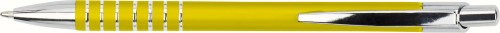 Kugelschreiber aus Aluminium, mit Metall-Clip, Zierringen und blauer Mine.