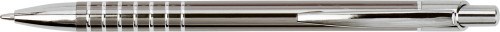 Kugelschreiber aus Aluminium, mit Metall-Clip, Zierringen und blauer Mine.