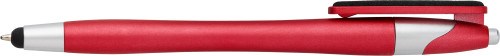 Kugelschreiber aus Kunststoff, mit Touch-Pen, Bildschirmreiniger am Clip und blauer Mine