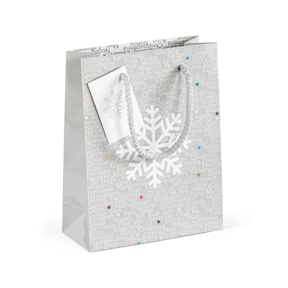Geschenktasche (klein) aus Papier mit glänzender Oberfläche (170 g/m²), Kartonbasis und einer veredelbaren Karte. 180 x 230 x 80 mm | Seil: ø6 x 300 mm