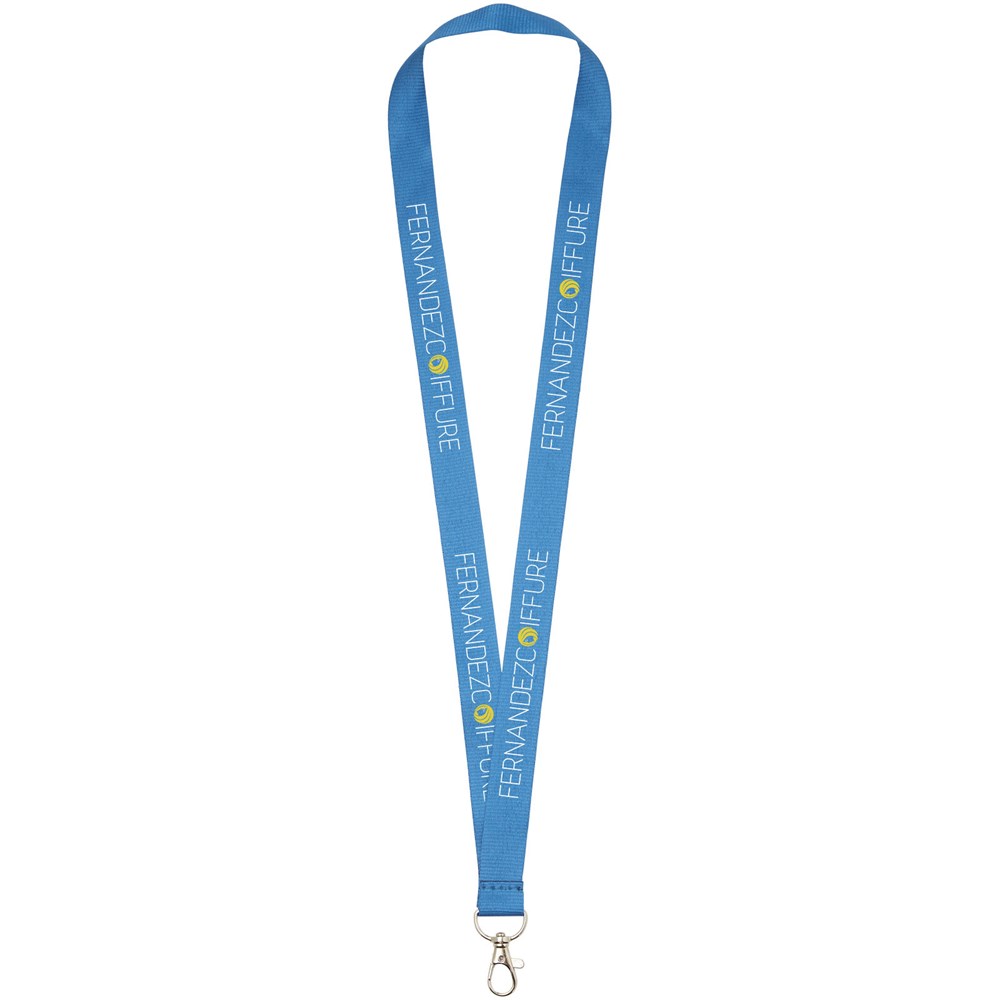 Trageband zum Einstiegspreis in einer breiten Farbpalette, das ein großartiges Preis-Leistungsverhältnis und beeindruckende Logogrößen bietet. Hochwertiger ovaler Haken, ideal für das Befestigen von Namensschildern, Ausweisen oder Schlüsseln. Einrichtungsgebühr für zweite Position entfällt, wenn auf beiden Seiten eine Werbeanbringung mit demselben Bildmaterial erfolgt.