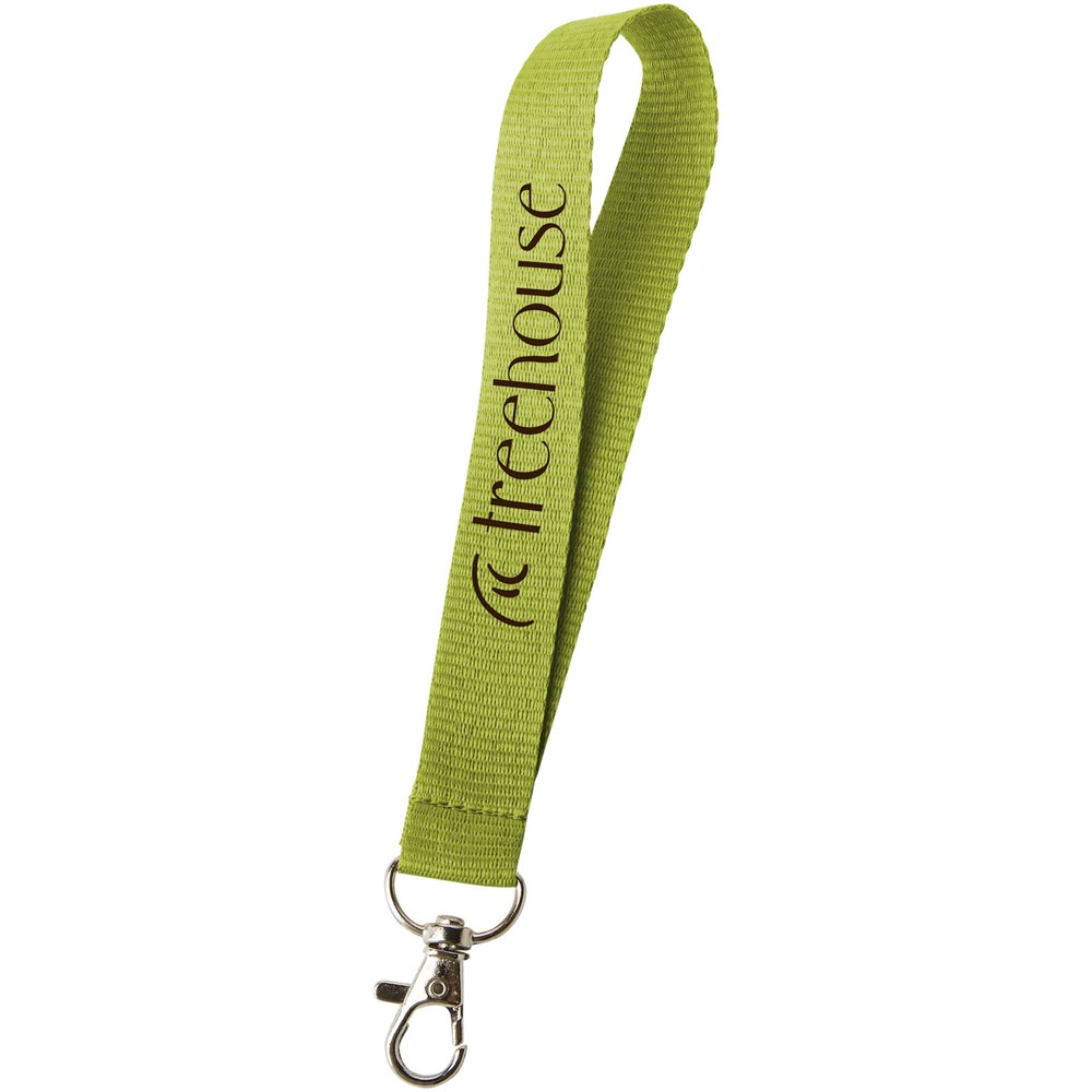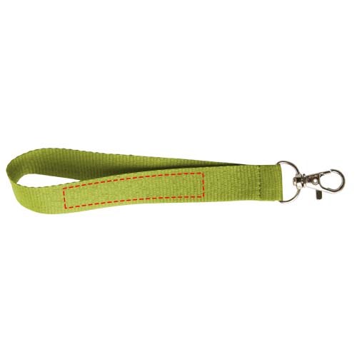 Mini-Lanyard, das einen Metallhaken für das Aufnehmen eines Namensschilds, eines Ausweises oder von Schlüsseln enthält.