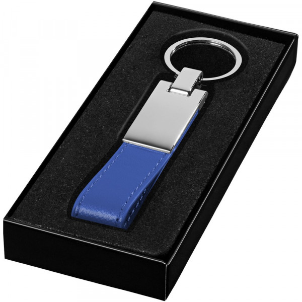 Versilberter Schlüsselanhänger im schwarzen Geschenkkarton.