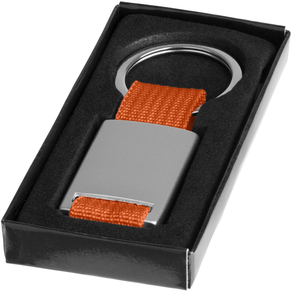 Rechteckiger Schlüsselanhänger. Halten Sie Ihre Schlüssel mit diesem attraktiven, modernen Schlüsselanhänger zusammen. Aluminium mit farbigem Polyester Gewebe. Verpackt in einer schwarzen Geschenkverpackung.