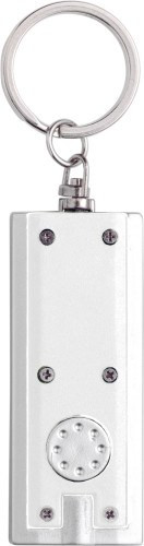 Schlüsselanhänger aus Kunststoff, mit LED-Lampe (weiß) und Metall-Schlüsselring. mehr