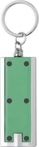 Schlüsselanhänger aus Kunststoff, mit LED-Lampe (weiß) und Metall-Schlüsselring.