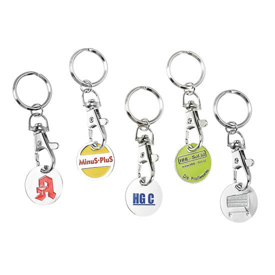 Auf Wunsch inkl. kostenfreier farbloser Einkaufswagen-Prägung auf der Rückseite.; Material: Eisen vernickelt, glänzend. Andere Materialien, Ausführungen und Währungen auf Anfrage.