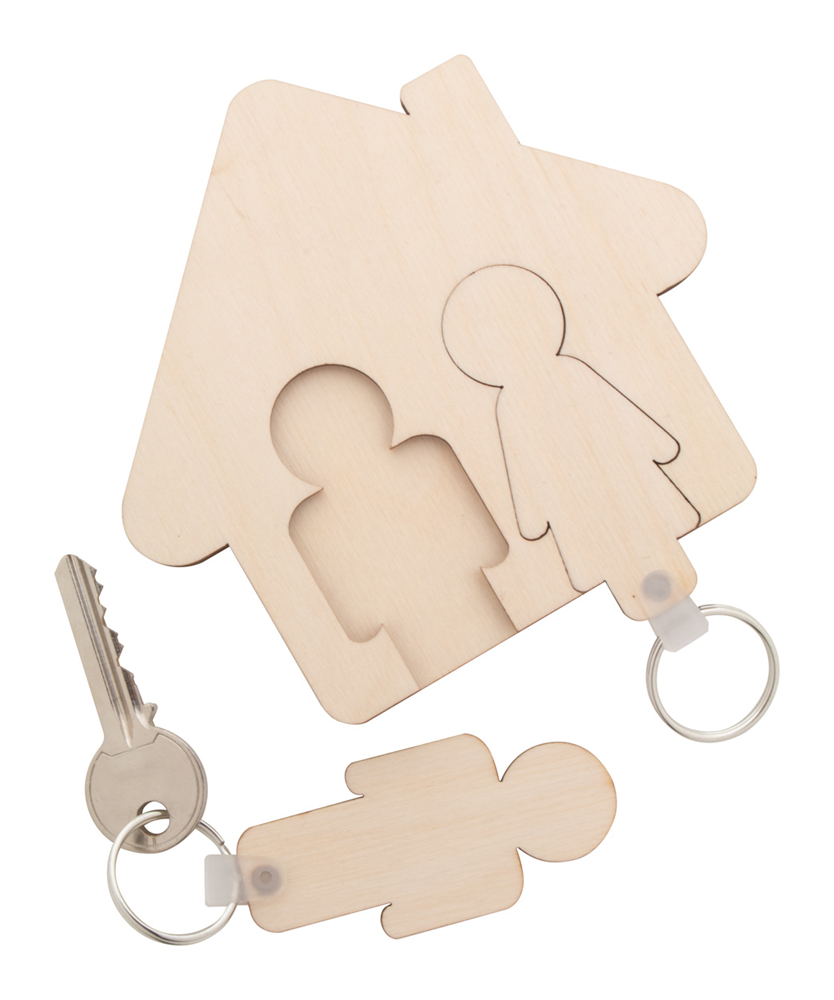 Wandschlüsselbrett aus Holz mit 2 abnehmbaren Schlüsselringen im Paar-Design. Material: Birkensperrholz.