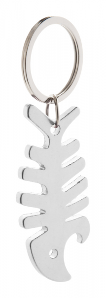 Aluminium-Schlüsselanhänger in Fisch-Form mit Flaschenöffner-Funktion.