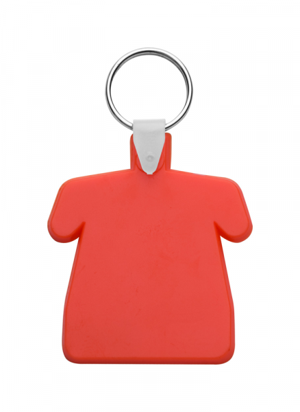 Schlüsselanhänger in T-Shirt-Form aus Kunststoff mit Metall-Schlüsselring.