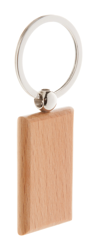 Rechteckiger Schlüsselanhänger aus Holz mit Metallring. mehr