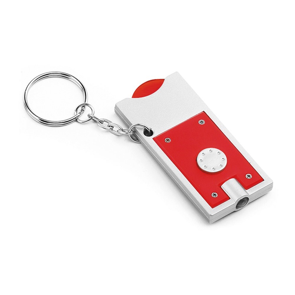 Schlüsselanhänger aus Kunststoff mit LED-Lampe und Chip, Größe 0.50 Euro. Inkl. Lithium-Knopfbatterie (1x). 91 x 5 x 29 mm
