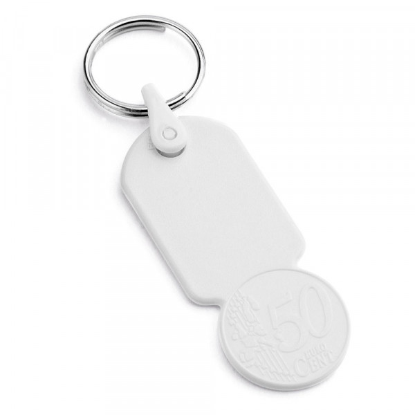Schlüsselanhänger. PS. Mit einem Kopf in Form einer 50 Cent Münze welcher als Einkaufschip genutzt werden kann. 25 x 60 x 2 mm