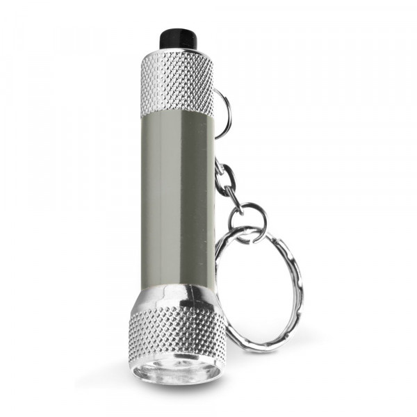 Schlüsselanhänger aus Aluminium mit Taschenlampe bestehend aus 3 LED-Lampen. Inklusive 4LR44 Batterien. ø17 x 62 mm