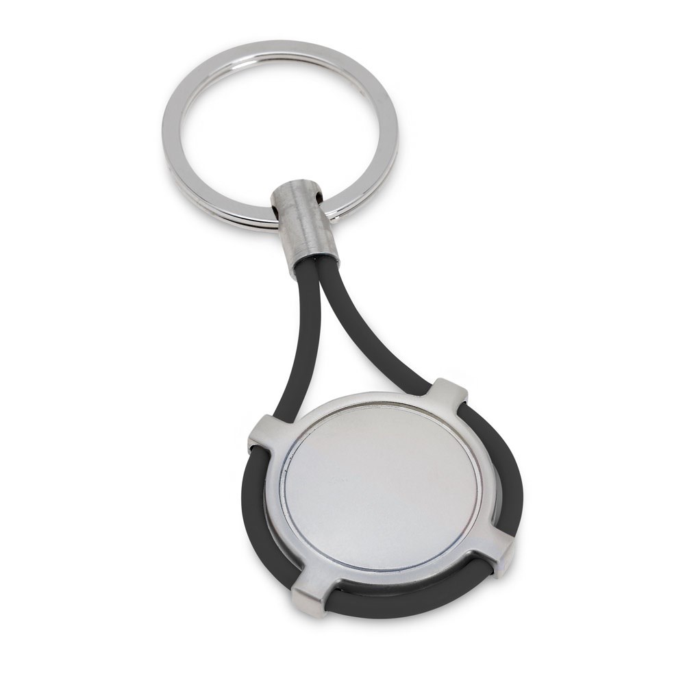 Schlüsselanhänger aus Metall und Silikon, kreisförmig. Geliefert in einer Geschenkschachtel. 36 x 66 x 5 mm
